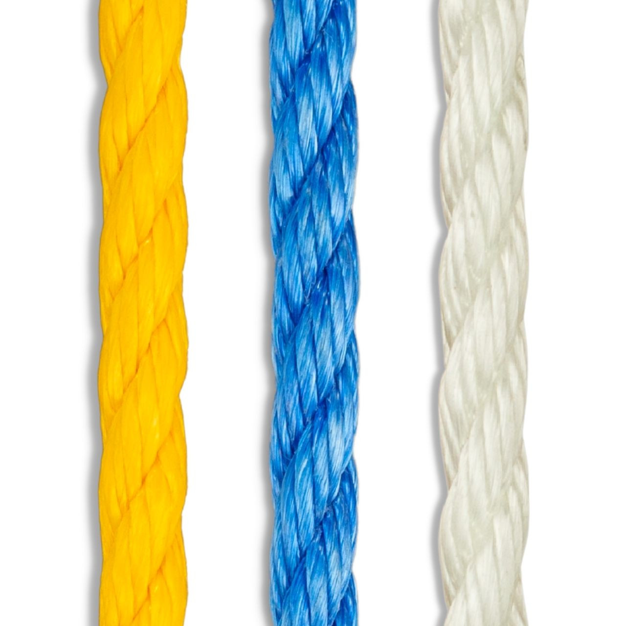 Construction: Available in 3-strand twisted, 4-strand twisted, and 8-strand braided/ plaited forms